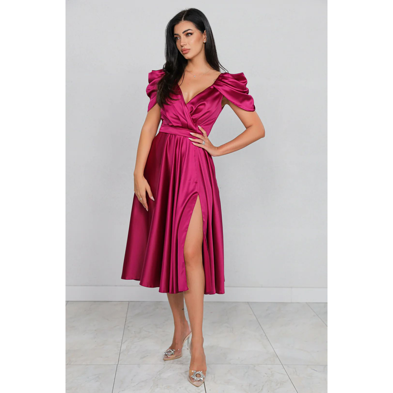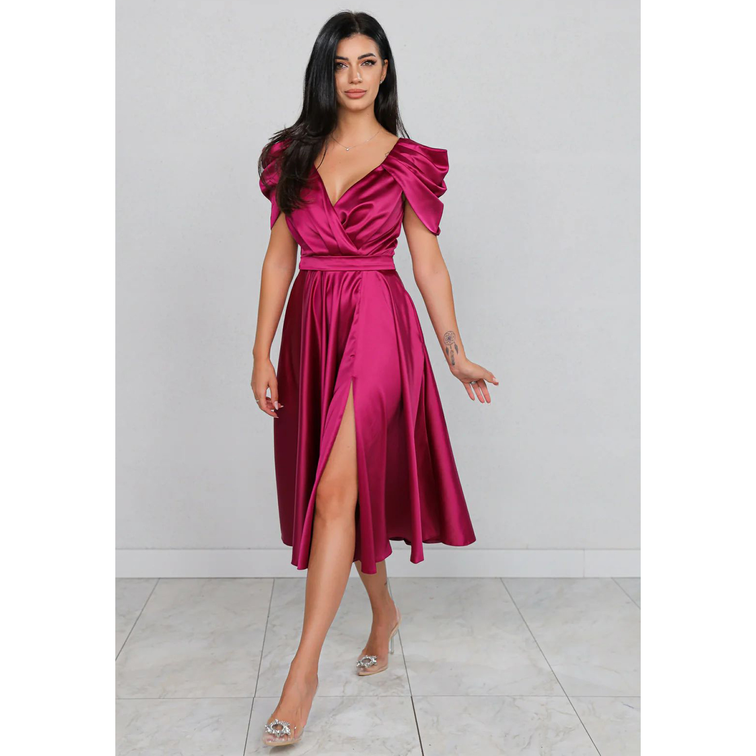 Daca iti doresti o tinuta care emană eleganță, dar este și confortabilă, atunci ai gasit-o! Materialul de calitate și fin la atingere îți asigură o purtare senzațională pe întreaga durată a evenimentului. Pregătește-te să te simți încrezătoare și fermecătoare în această creație!