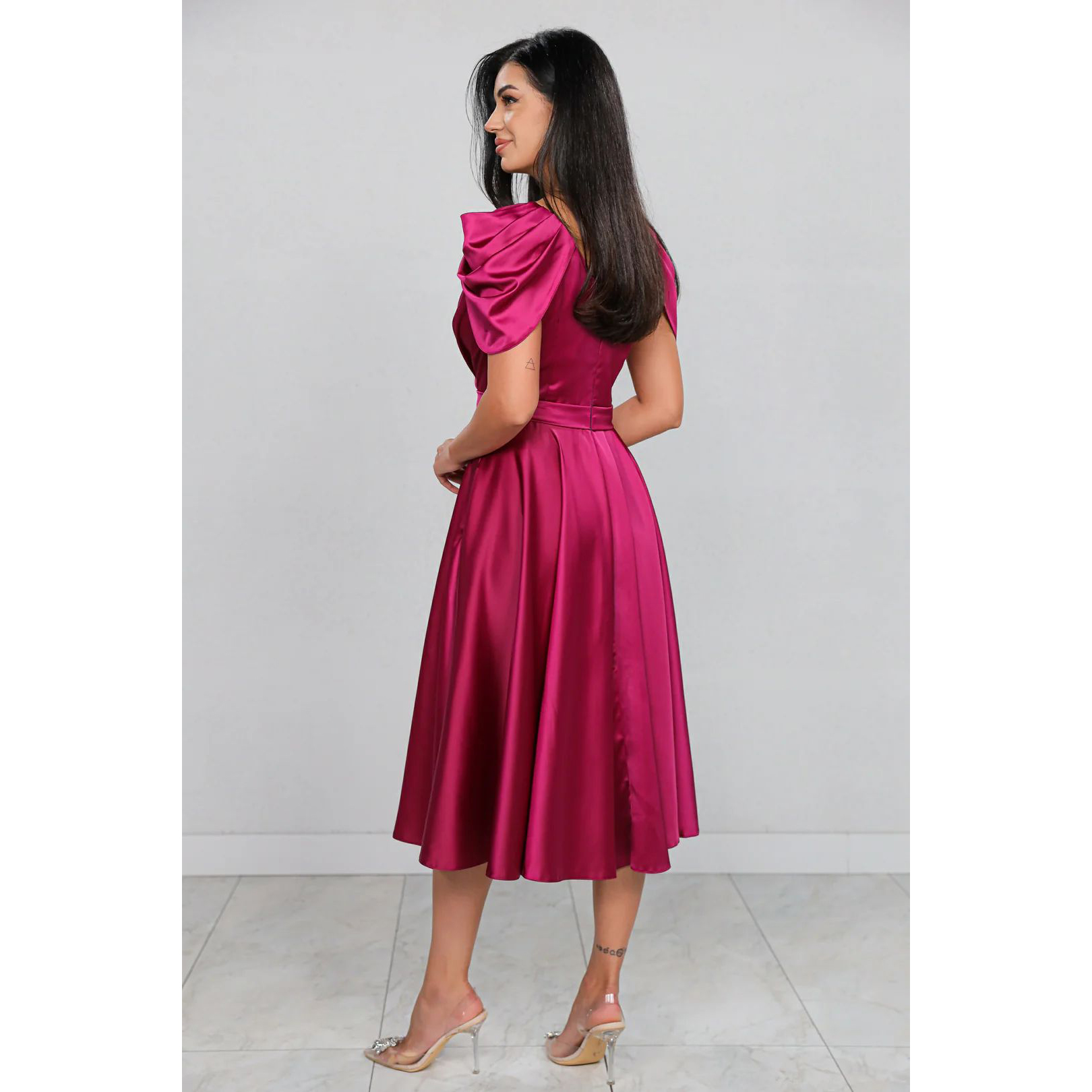 - Inchidere cu fermoar ascuns la spate;
